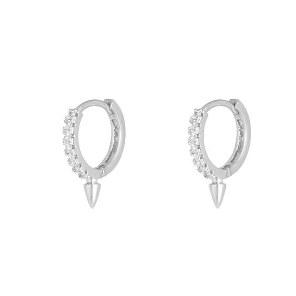 Earrings with a little spike and rhinestones.